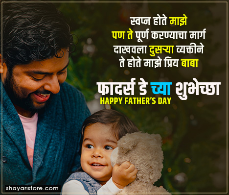 Fathers Day Wishes In Marathi:मित्रांनो, येथे आम्ही Fathers Day Wishes In Marathi चा अप्रतिम collection आणला आहे, जो तुम्ही तुमच्या मित्रमैत्रिणींसोबत आणि कुटुंबियांसोबत शेअर करू शकता. तुम्हा सर्वांना हा collection खूप आवडेल अशी आशा आहे.